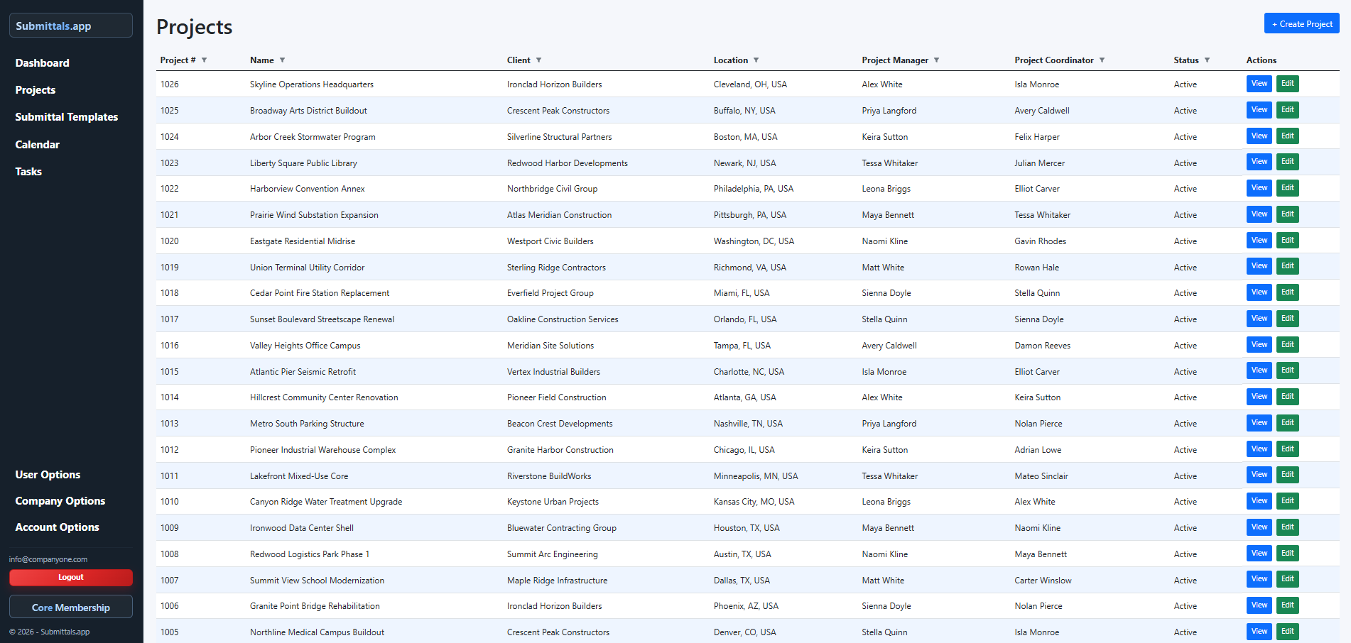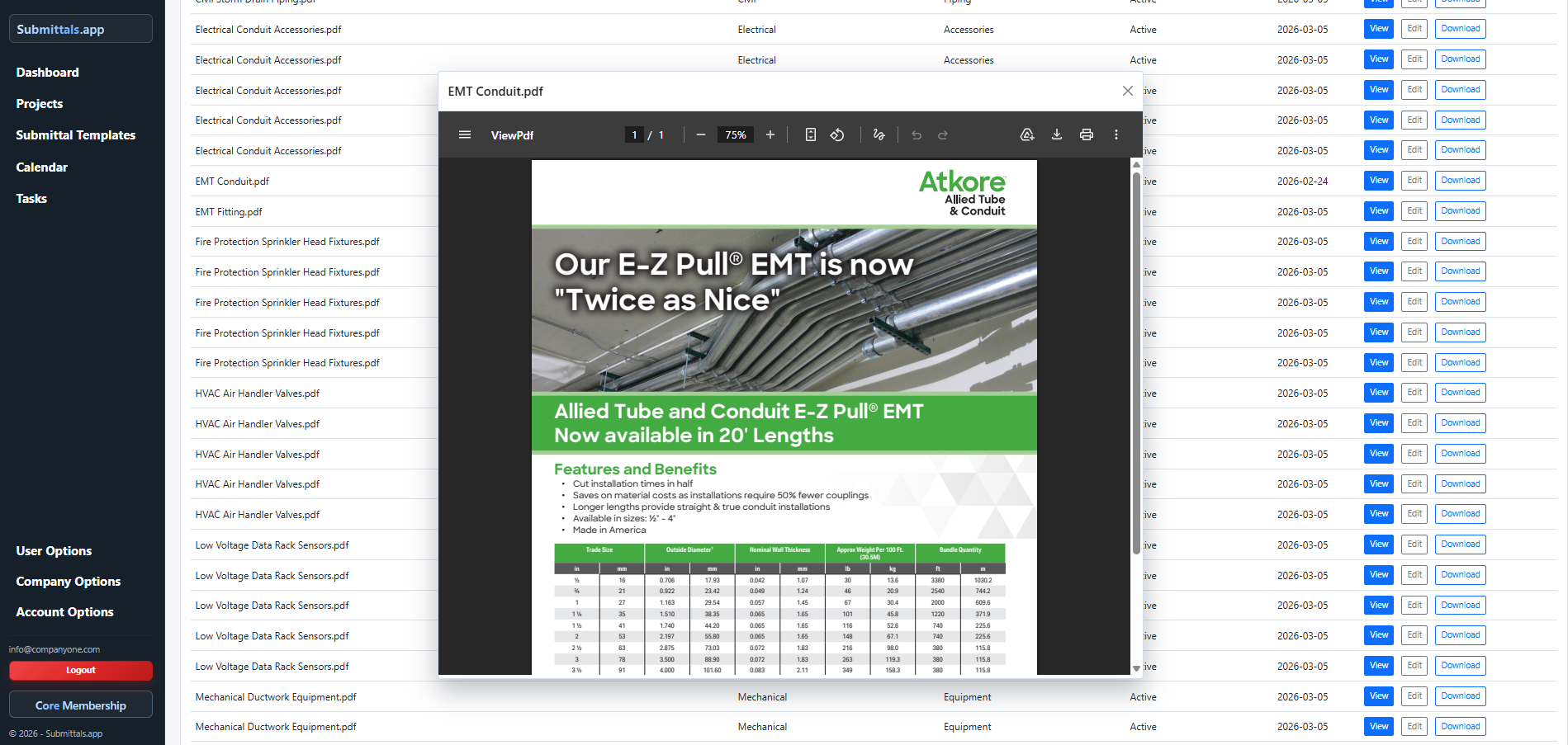 Core gives small teams control over the creation and management of project submittals.
