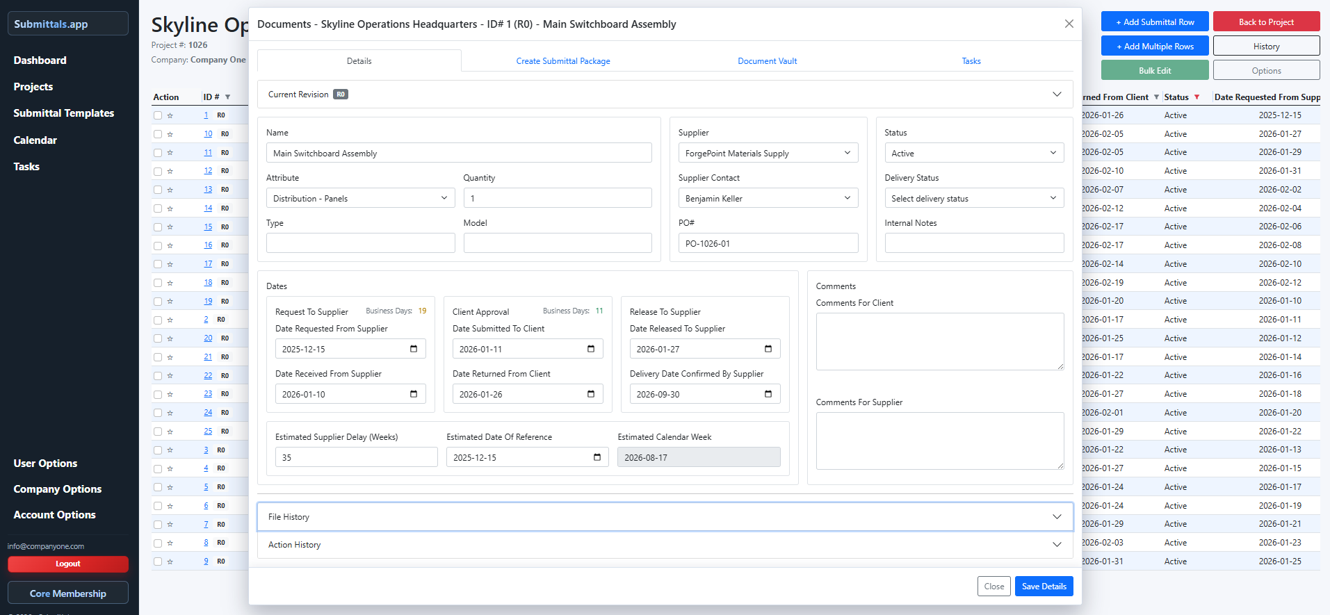 Track submittals, revisions, and deadlines.