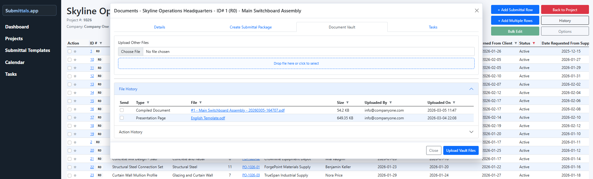 Easily see the status of all submittals and pending deliveries.