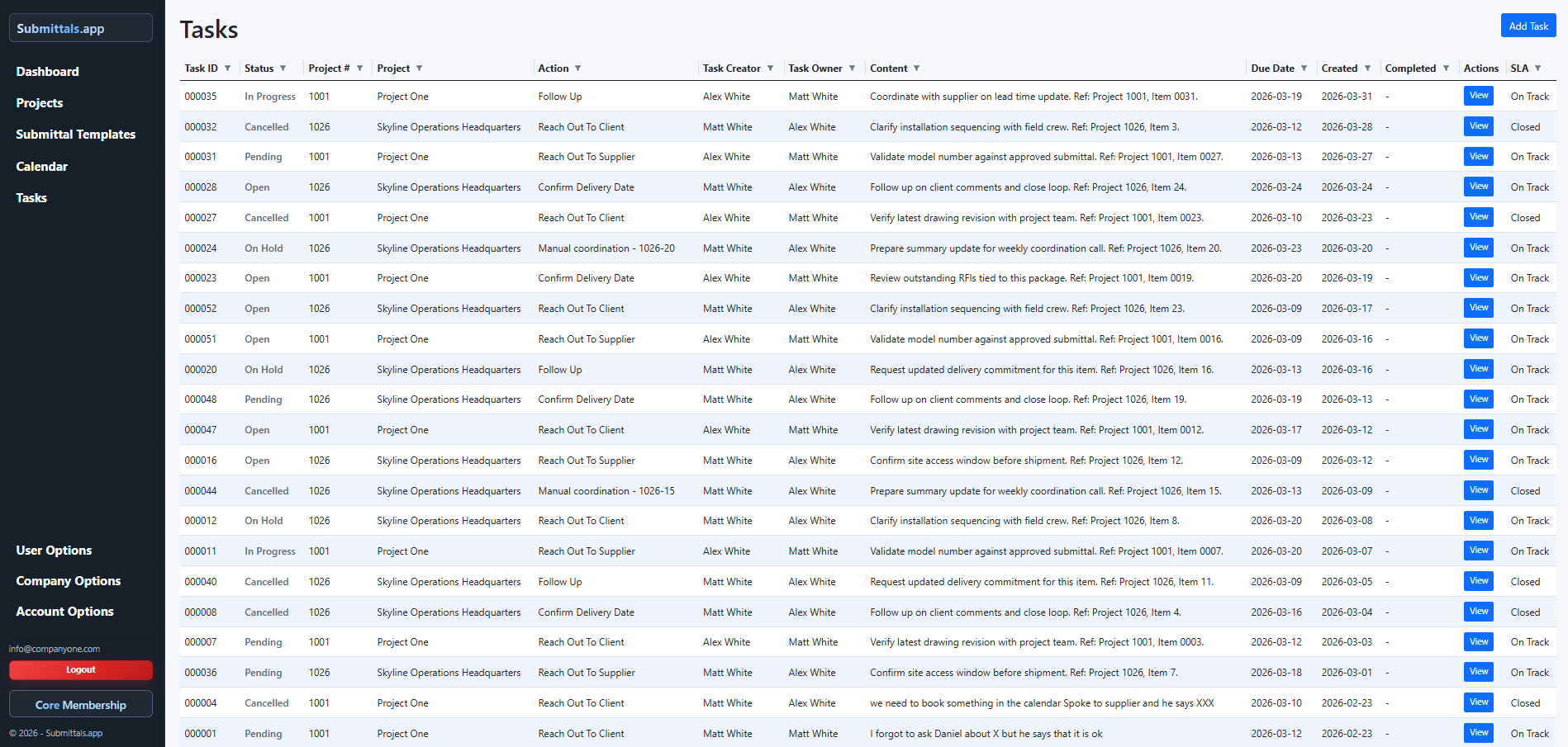 Having a powerful submittals and tasks system, keeps everyone focused on the objectives.